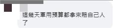 对此事故,有岛内网民在脸书评论区留言称,“这几天军用预算都拿来赔自己人了”“这种演习是出来让人笑的”“最近看到台军都要闪远一点”“没有不出事的一天……”